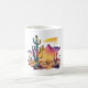 Abstract illustration of Mexican watercolor desert sunset with cacti plant, grass and mountain view