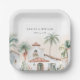 Mexican Watercolor Palm Tree Destination Wedding Paper Plate
