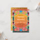 Colourful Mexican Fiesta Wedding annoucement. Features bright papel picado inspired flowers, FAUX gold glitter accents, maracas and an Aztec mexican rug background.