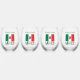 Mexico and the Mexican flag with green personalization on a set of stemless wine glasses. The word MEXICO shows beneath the flag in the same colours. Add a name to customize this shot glass for yourself or gift giving. Fun to toast others at a Mexican family reunion, Cinco de Mayo, or any fiesta. Great for travel groups, family reunions, and clubs, too.
