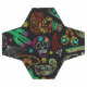 Joyful and Colourful Line Art Mexico Fiesta Pattern, composed by Typical Elements like sugar skulls, maracas, inca warrior, aztec warrior, chilli pepper, cactus, pyramid, lime, tequila, sombrero, tacos, a chameleon, and some floral ethnic and decorative elements. Original Vector Art Copyright BluedarkArt.