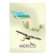 Mexico Map beach Travel poster with a prop plane.
