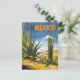 Restored and digitally enhanced vintage travel poster showing a cactus with a Mexican village in the background. Imperfections removed and colours corrected. Image courtesy of Library of Congress.