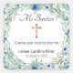 Mi Bautizo Stickers for favours in blue floral colours, square shaped. Spanish language baptism stickers for boys or girls. Personalize with your child’s name and date of baptism, or Bautizo, Text can also be changed to My Baptism if you’d like.