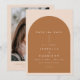 This wedding save the date features a burnt orange and beige coloring paired with a modern minimalist layout and simple bohemian arch. It's the perfect save the date for your bohemian desert or rustic earth tone event. Add your photo and wedding website onto the backside for a personal touch.