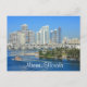 Welcome to Miami, Florida! Miami offers an unparalleled multicultural experience, all against a beautiful beach backdrop. This fun postcard features the Miami Skyline and harbour with clear blue skies.