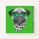 This design features a portrait of pug in with sunglasses and a black and white chequered scarf.