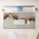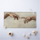 La Création d'Adam par Michelangelo Peinture chef-d'oeuvre - La Création d'Adam est l'un des tableaux les plus célèbres au monde, créé par le maître-artiste Michelangelo à Rome. La Création d'Adam est une fresque classique que Michel-Ange a peinte dans le Vatican de Rome, sur la Chapelle Sixtine, en 1511-1512. La Création d'Adam imprimée sur notre don est une partie de la fresque, montrant toute la création de l'Homme dans le Livre biblique de la Genèse, où Dieu (à droite) donne vie au premier homme, Adam (à gauche). Le tableau montre la presque touche des mains, entre Dieu et Adam. L'image est un tableau emblématique de la Renaissance. Michel-Ange montre Dieu comme un vieil homme aux cheveux blancs et barbus blancs, portant un long vêtement blanc. Dieu et Adam ont tous deux leurs bras tendus l'un à l'autre, comme si Dieu générait une étincelle de vie dans le nouvel homme Adam. La peinture de Michel-Ange montre la ressemblance de l'homme à Dieu, montrant Dieu créé des humains à son image.