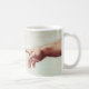 Michelangelo Hands mug. Fresco Sistine Chapel. One of the most iconic scenes in Western art. This detail from Michelangelo’s creation of Adam shows God reaching down to touch fingers with his creation. The work is charged with religious and cultural import and stands as one of the most recognized images in the world. A great gift for fans of Michelangelo, the Sistine Chapel, Renaissance Art, and religious painting.