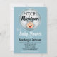 This funny baby shower invitation features a cute white baby face that says "Made In Michigan" on a blue background. Image is on front and back of invitation.