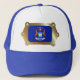 The design printed on this hat features the Michigan flag surrounded by a metallic looking frame.