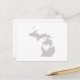 Keeping in touch with a Michigander you love has never been easier then with a Michigan state shape filled in with solid grey background and a heart cutout postcard.