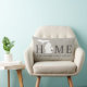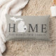 Stylish welcome pillow features a typography design with "Home" text and Michigan state map. The soft black / onyx heart city marker can be positioned over the city where you live via Customize. Personalize with your family monogram or your home town city name. Warm grey, soft black, and white colours. A pattern of horizontal stripes dresses up the back of the pillow.