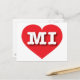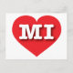 This postcard features a vibrant, red heart containing the bold, white, upper case letters MI, the official abbreviation for Michigan, the Great Lakes state. The reverse side of the postcard is blank, awaiting your handwritten sentiments or personalized text.