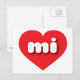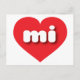 This postcard features a vibrant red heart containing the bold, white, rounded lower case letters mi, a playful abbreviation for Michigan, the Great Lakes state. The reverse side of the postcard is blank, awaiting your customized text or handwritten sentiments.