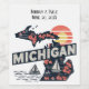 This stylish bottle label features a retro style scenic Michigan state silhouette along with customizable text at top, which can be personalized for weddings, family reunions and more.