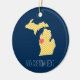 Michigan State Map with Custom Love Heart and Name Ceramic Ornament