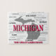Michigan state pride image including map silhouette with cities, towns and nickname.