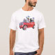 The T-shirt is a well-made, true to size T that fits comfortably and washes well. Since I only dry on the lowest setting or hang up on the line, not sure how they'd do in a warm dryer. This is one of my favorite materials for T's. The design came out well - centered and the colors showed up nicely. Lighter T's are easier to use for background on some pics.