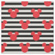 This super cute wrapping paper features black and white stripes along with the iconic Mickey Mouse head in red.