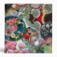 A vibrant abstract collage of overlapping petri dishes, each a universe of swirling, colourful mould and bacteria. This intricate work transforms scientific specimens into a stunning display of organic art and chaotic beauty.