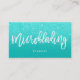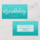 An elegant modern, stylish makeup artist microblading business card with elegant script hand lettering style typography in white on a faux aqua glitter and pastel aqua trendy and elegant background. If you need any customization, don't hesitate in contacting me
