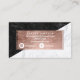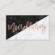 An elegant modern, stylish microblading artist business card with elegant script lettering style typography in faux rose gold foil on a trendy and elegant black and white marble colour block background.