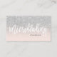An elegant modern, stylish microblading eyebrows business card with elegant script hand lettering style typography in white on a faux silver glitter ombre on modern blush pink background. If you need any customization, don't hesitate in contacting me.