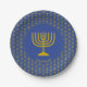 Mid Blue Hanukkah Customizable MENORAH Paper Plate
