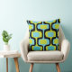 Mid-Century Aqua Chartreuse & Black Retro Pattern Throw Pillow