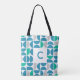 Mid Century Aquatic Tiles Monogrammed Tote Bag