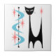 Mid Century Atomic Cat with Blue Boomerangs Tile