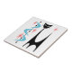 My Atomic Black Cat design with Blue Boomerangs and Pink Starbursts on a white ceramic tile. All images copyright ©Donna Mibus. My Atomic Cat image is registered with the US Copyright Office. No part of him can be used or copied without permission. Please visit https://donna-mibus.pixels.com/ for more of my work.