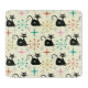 Add atomic style to your kitchen with this cutting board featuring cute black atomic cats pattern with mid century retro starbursts in pink, orange and teal on light cream background. It's great gift for retro cats lovers and mid century fans