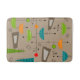 Atomic Era Inspired bath mat with rectangles, lines, half moon shapes in colours relevant to the time period.