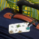 Pleasantly surprised at the quality of the luggage tag. It was exactly as shown and my daughter will be pleased. The address label on the back of the luggage tag was neat and clear.