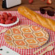 Mid Century Atomic Starbursts on Orange Ogee Paper Plate