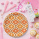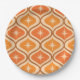 This is elegant mid century modern atomic starburst pattern placed in orange and amber ogee ovals on beige background. It's great paper plate for anyone who love retro geometric designs