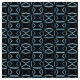 Retro modern looking geometric pattern in bold colours: black, blue and white. It reminds me of atomic patterns of the fifties.