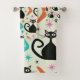 Mid Century Black Atomic Cats with Boomerangs Bath Towel Set