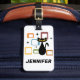Colourful abstract Mid Century style illustration with black cat, black stars and colourful cubes decoration on white background. You can add your name/monogram to personalize the item.