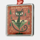 Mid Century Black Cat Merry Martini Christmas Metal Ornament