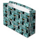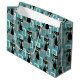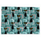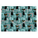 Colourful abstract Mid Century style pattern with black cat, black stars and colourful (blue, white, pink) cubes decoration on turquoise background for every cat lover, cat mom and cat dad.
