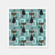 Colourful abstract Mid Century style pattern with black cat, black stars and colourful (blue, white, pink) cubes decoration on turquoise background for every cat lover, cat mom and cat dad.