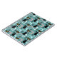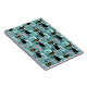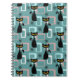 Colourful abstract Mid Century style pattern with black cat, black stars and colourful (blue, white, pink) cubes decoration on turquoise background for every cat lover, cat mom and cat dad.