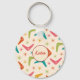 This is custom personalized keychain featuring classic mid century modern boomerangs pattern with atomic starbursts in orange, pink, red , green and teal on light cream background.You can change the name on the design using personalize template