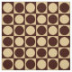 Modern abstract chequerboard design of circles and squares in dark chocolate brown and camel tan