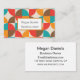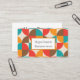 Make a bold first impression with this custom business card featuring a mid-century modern abstract pattern of half circles in vibrant orange, red, teal, and brown. Inspired by retro 1950s design, this geometric layout adds a stylish, creative edge to your professional identity. You can change name and details using personalize button