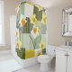 Playful mid-century modern floral pattern shower curtain featuring stylized daffodils set in a retro tile grid. Olive green, chartreuse, and warm cream tones combine with starburst accents and geometric textures for a nostalgic vintage feel. Ideal for retro design lovers, mid-century home décor fans, and bold pattern collectors. A standout gift for designers, vintage enthusiasts, and floral lovers, perfect for spring styling, retro interiors, and statement décor.