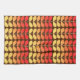 Kitchen towel in a Mid-Century Modern Danish inspired textile pattern of stylized leaves - fire colours shading from deep mandarin orange to golden yellow, accented with tan, on a dark chocolate brown background